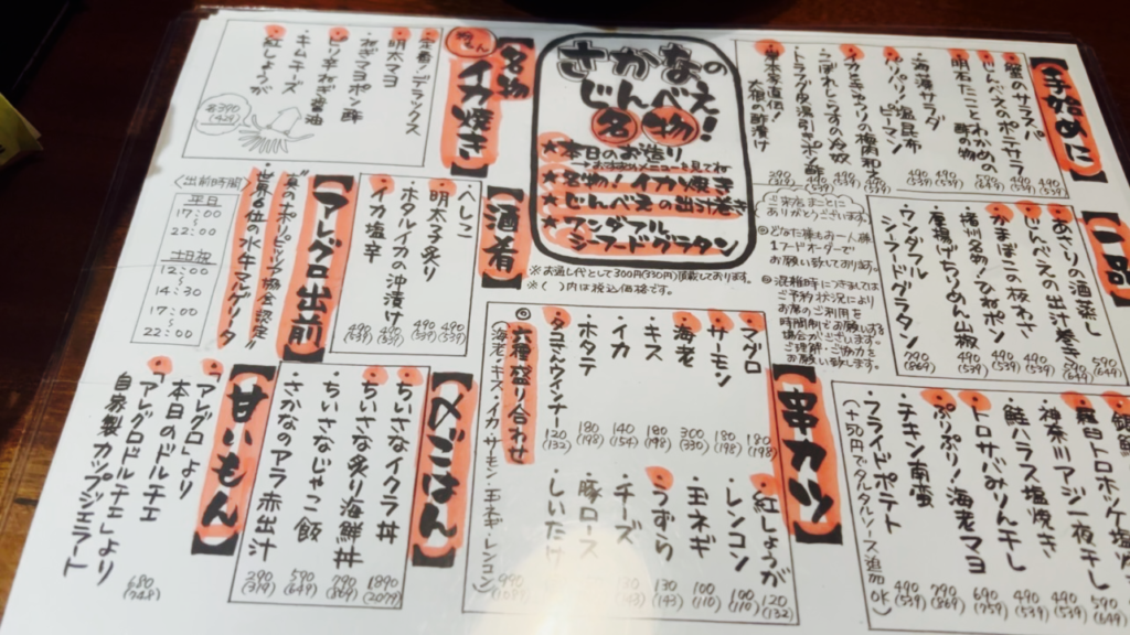 店名にさかなが付くだけあって魚メニューが多いけどそのほかにもいろんなメニューがありました^ ^